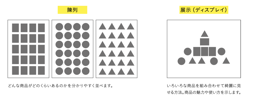 陳列と展示|陳列と展示の違いを理解して商品を並べる