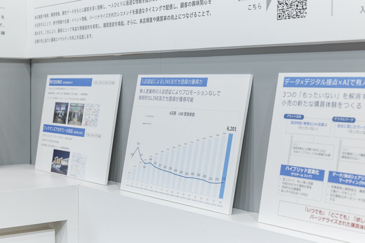 A1サイズのパネルをブース内にたくさん貼っているブースをよく見かけます。そして最近はそのパネルをLEDパネルにして光らせているブースも。ですがパネルをブース内に掲示する場合にはかなり慎重な検討が必要です。まず来場者は出展社が思っている程、じっくりと長い時間をかけてパネルは読んでくれません。せいぜい A1サイズのパネル1枚を1分というところでしょうか。もしそれ以上読んでいるときっと出展社のスタッフが声を掛けることでしょうから。基本的にパネルは、ぱっと見た瞬間、数秒で「何を伝えたいのか」を理解してもらえるような内容であることが重要です。読んでほしいあまりにたくさん内容を詰め込み過ぎるのは NG。当社ではそんなパネル対策として、パネルと同時に配布資料とカンペ(資料を貼り付けた説明用手持ちパネル)を活用する案を推奨しています。