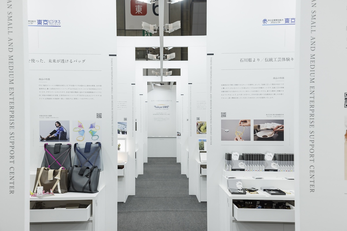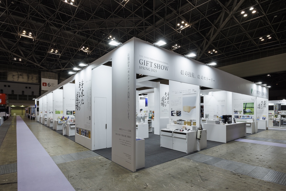 41社の出展企業は「海外向け」「国内向け」「チャレンジ中の企業」など、4つのテーマに分類され、集合ブースの条件として各社に均等な展示スペースを割り当てています。
