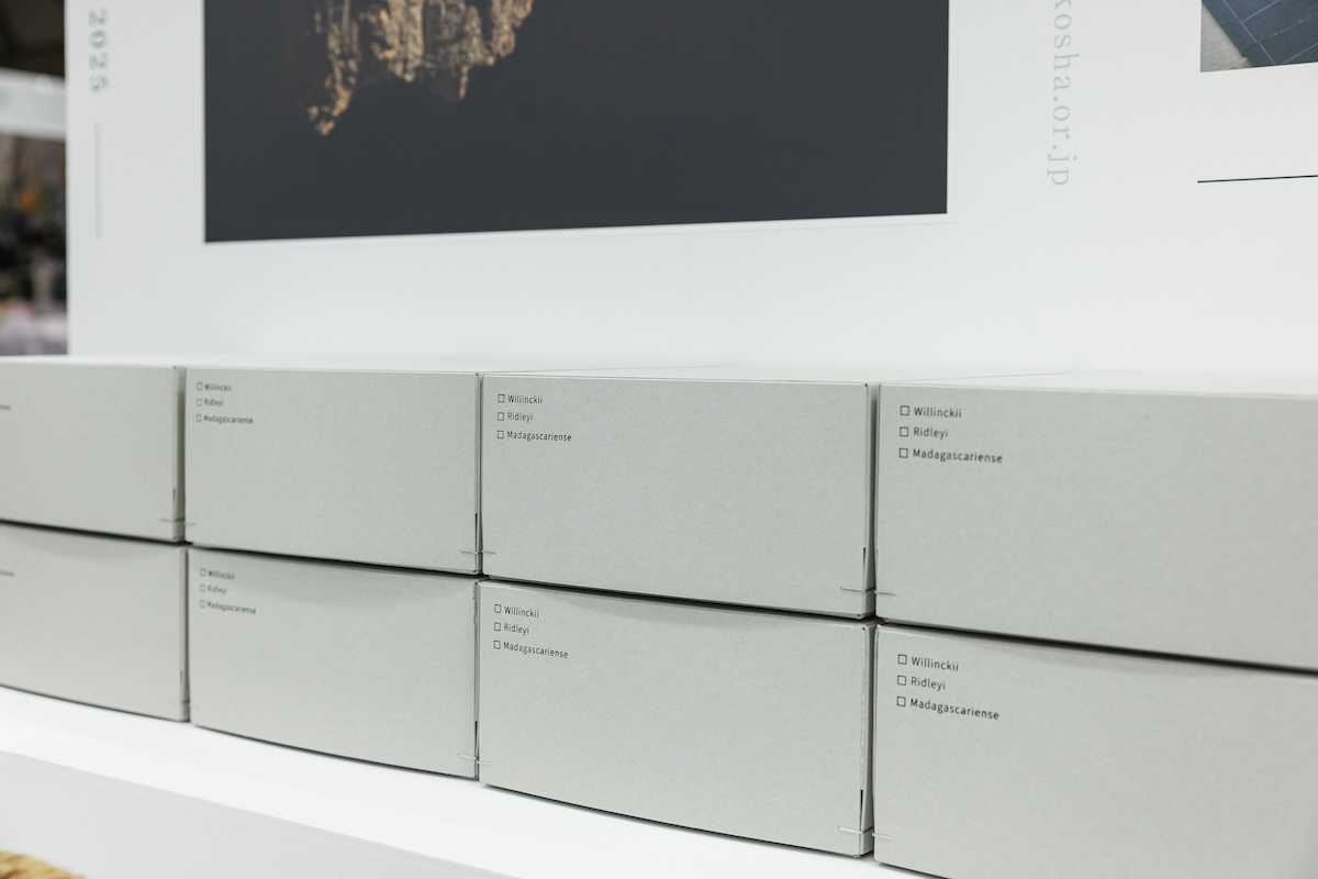 SUPER PENGUIN事務所に商品を持参いただき、展示の目的や主要商品をヒアリングしながら展示台上の構成を決定しました。キャプションサイズや雛壇の仕様もこの段階で調整し、各社が最大限の効果を得られるよう準備しました。