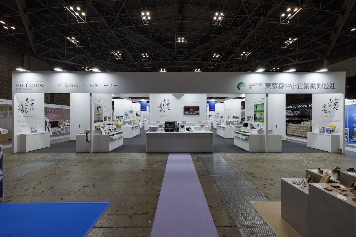 東京都中小企業振興公社による大型集合ブースは、約44小間という大規模スペースに41社が参加する見応えのある展示でした。