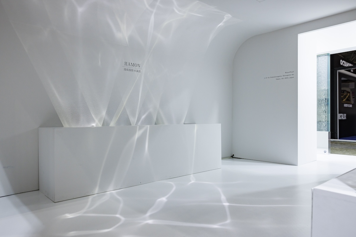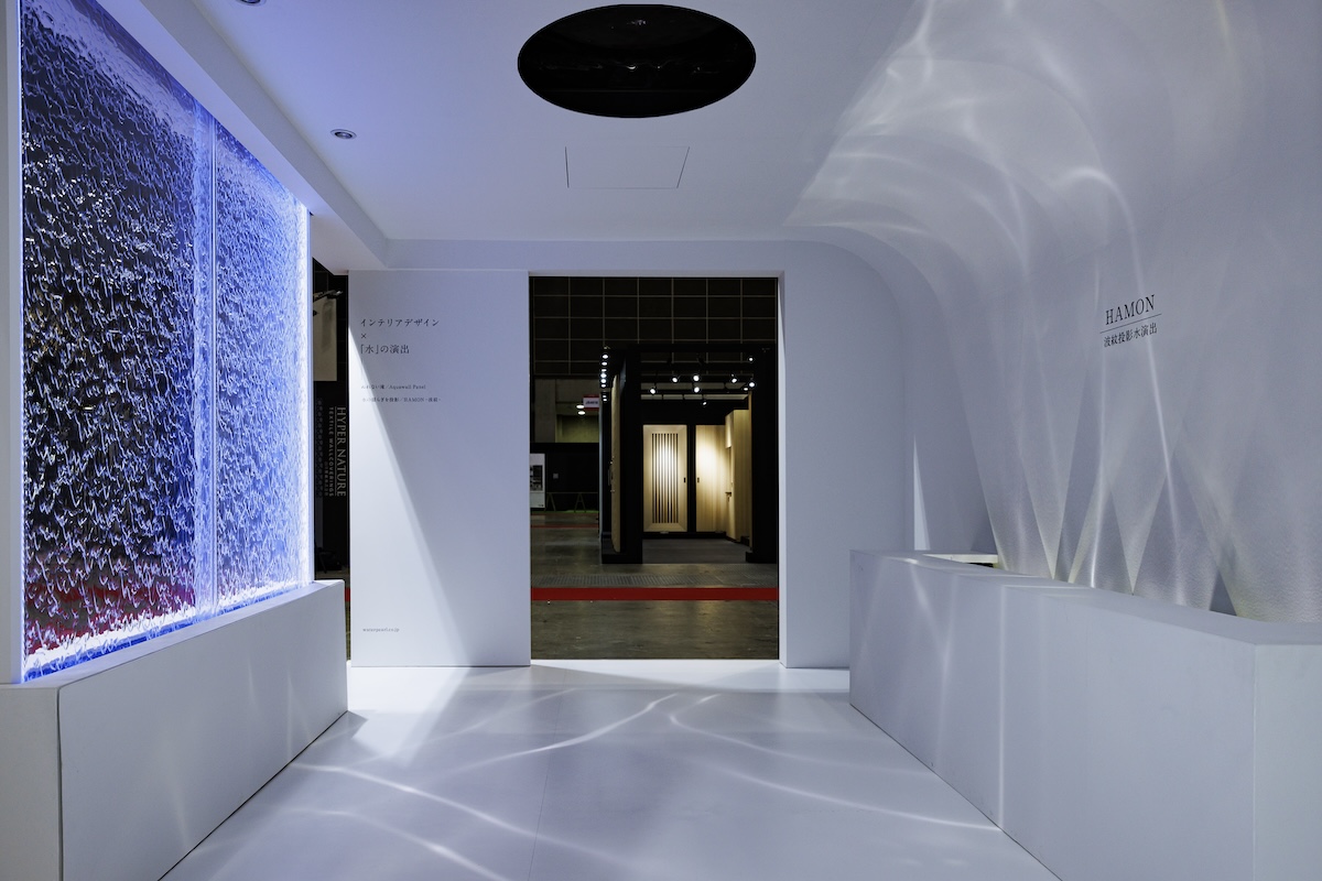 ブース内には波紋を投影して水を感じられる商品「HAMON」を展示、体感できるようにしました。