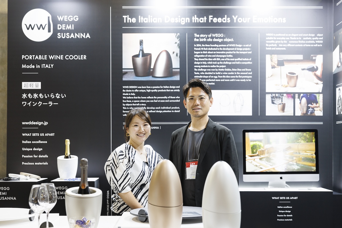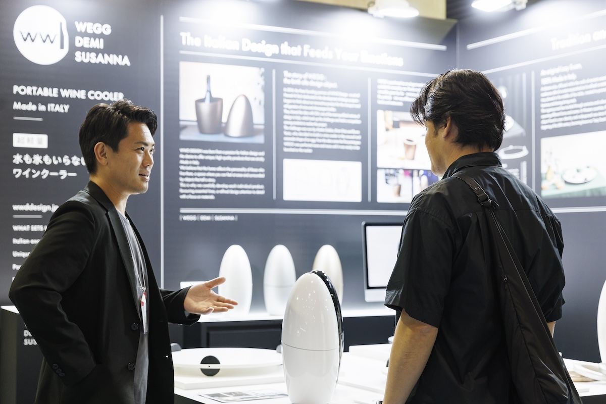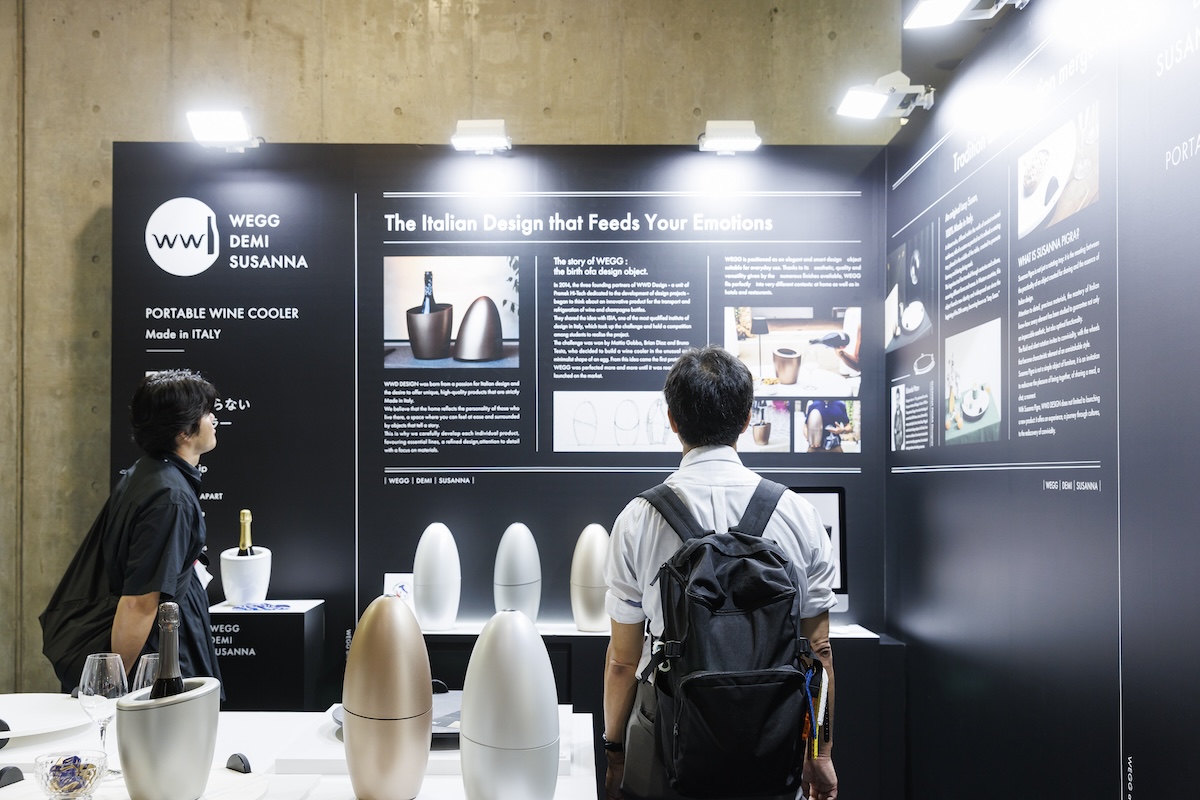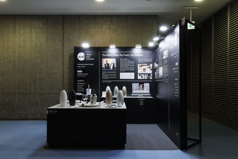 埼玉県川口市に本社を置く株式会社HEPは、卵の形をしたイタリア製ワインクーラー「WEGG(ウェッグ)」の総輸入販売元です。スーパーペンギンとの繋がりは、同社社長が川口市の商工会セミナーにてスーパーペンギン代表・竹村のスピーチを聞いたことに始まりました。ギフト・ショー春2024での初出展時にスーパーペンギンがブースデザインを担当。今回は2回目のご依頼でした。